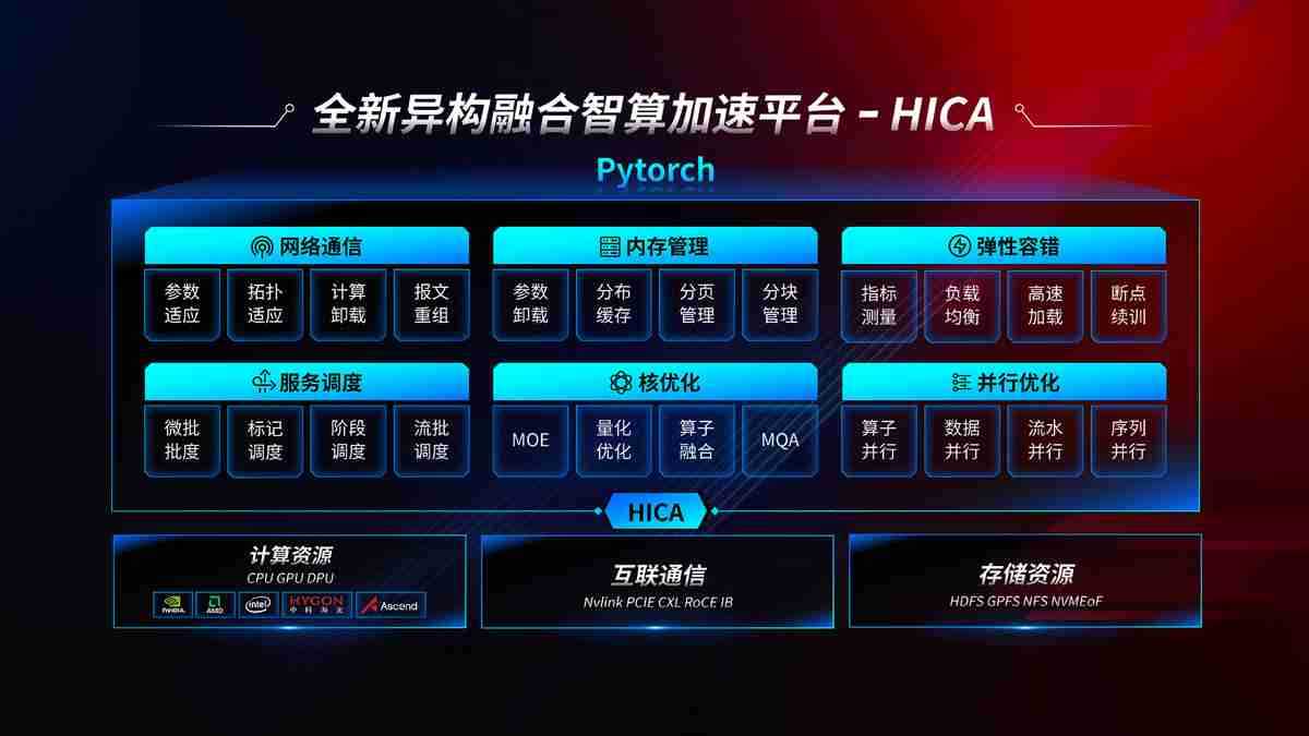 通过自研的服务层、、中间适配层、、、、以及调度编排算法,,采用数据并行、、模型并行等多种并行方式,,把并行计算任务进行有效的分解,,,使其分别由相应的软件栈和算力资源来承接。。当GPU资源变化,,,,HICA可以实时动态调度计算子任务并调整模型拓扑和架构,,,以充分聚合各种算力资源。。。